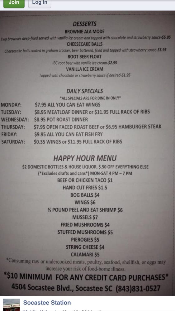 Socastee Station, a cozy diner in Myrtle Beach, SC, offers a variety of tasty dishes with a focus on comfort food. The menu features options such as the popular Chicken Salad Sandwich, Fried Chicken Dinner, Blackened Salmon Skillet, and Chicken Marsala. The starters, including the famous 25 Wings and Chicken Bog Balls, are perfect for sharing with friends or family. The laid-back atmosphere, outdoor seating, and full bar make it a great spot for groups or a casual dinner. The daily specials, like the Chicken Salad Sandwich and Fried Chicken Dinner, are homemade and delicious. With its diverse menu, friendly staff, and convenient amenities like takeout and delivery service, Socastee Station is a must-visit for food lovers seeking a relaxed dining experience.